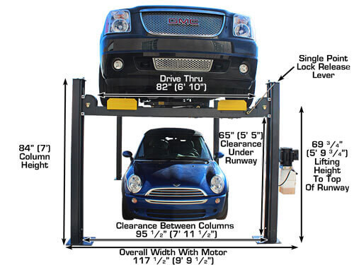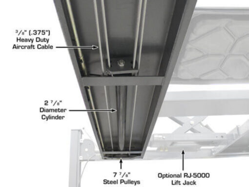 The Atlas® 408SL super deluxe portable vehicle storage lift is designed for those car enthusiasts who demand the absolute best look and superior quality. The 408SL has all the great features of our Atlas® Garage Pro Series 4 post hobbyist lifts, but incorporates many features found only on our Atlas® commercial grade 4-post lifts. All columns incorporate two special bends which help to increase the column strength. These strategic bends also increase the surface area for the slide block to travel. Horizontal cables are “hidden” inside of the cross tubes. Professional grade wheel covers are used to eliminate almost all exposure of cables and the double lock system. The Atlas® 408SL has “more metal” and weighs over 100 lbs. more than other hobbyist lifts based upon the same column and runway configuration.