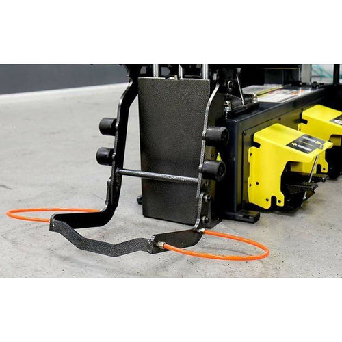 This touchless tire changer features conveniently placed foot pedals that give operators precise control at all times. The powerful turntable works systematically at a controlled speed for easy tire removal and installation. The smooth, effortless, power delivery of the 3 HP motor provides multi-speed install performance, even on tires with stubborn beads. Reversible direction offers operators the ability to back up in the event of turntable stall during stubborn bead installation.